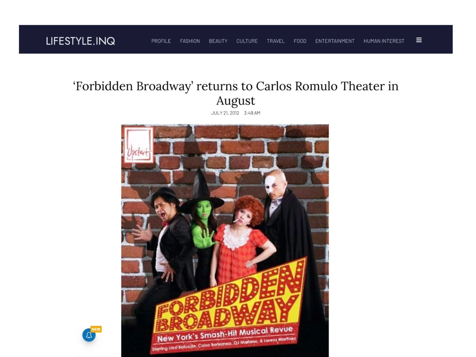 LIFESTYLE INQUIRER. FORBIDDEN BROADWAY REVIEW.